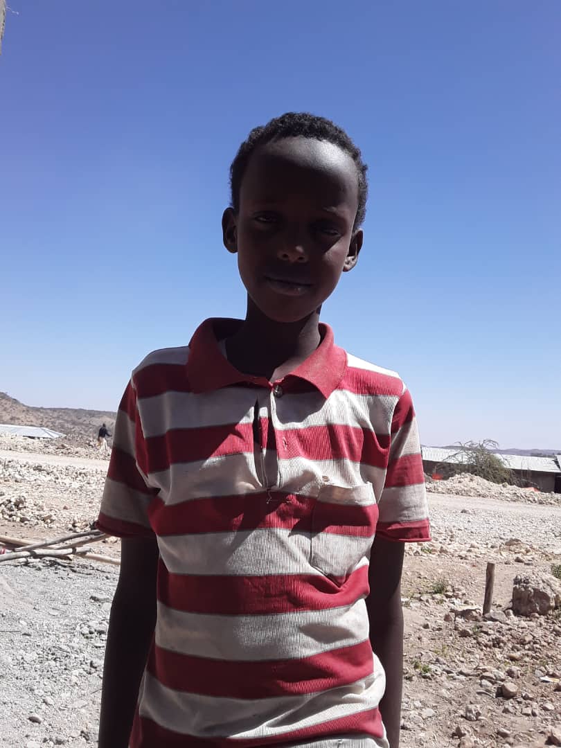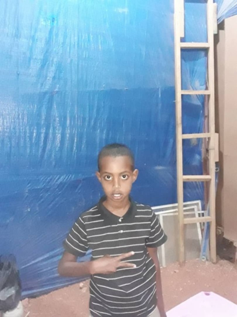 Mustaga Sh. Adullahi Hussein is a 13-year-old child who's father was deceased due to war. He currently lives in the city of Guna Gado with his Mother